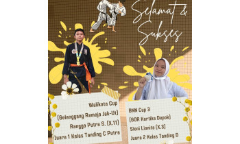 Alhamdulillaahi rabbil’aalamiinPuji syukur ke hadirat Tuhan yang Maha Esa, Tim Pencak Silat SMAN 1 Tarumajaya telah berhasil menorehkan prestasi membanggakan. Rangga Putra Surachman (X.11) meraih juara 1 kelas tanding C putra di event Walikota Cup Gelanggang Remaja Jakarta Utara. Sioni...