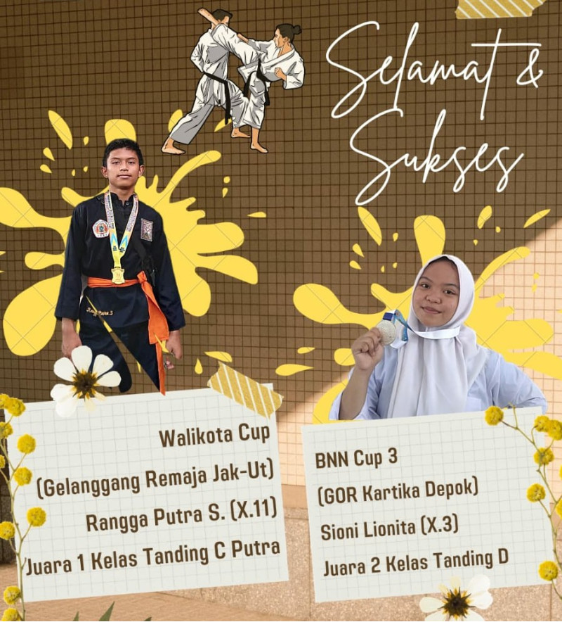 Puji syukur ke hadirat Tuhan yang Maha Esa, Tim Pencak Silat SMAN 1 Tarumajaya telah berhasil menorehkan prestasi membanggakan. Rangga Putra Surachman (X.11) meraih juara 1 kelas tanding C putra di event Walikota Cup Gelanggang Remaja Jakarta Utara. Sioni Lionita (X.3) meraih juara 2 kelas tanding D BNN Cup 3 GOR Kartika Depok.