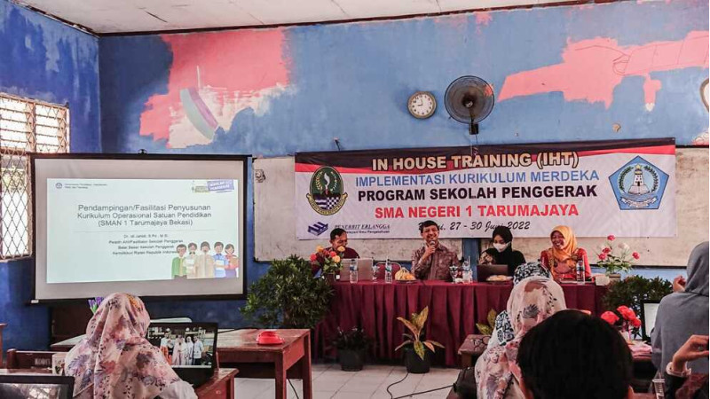 Dalam rangka mempersiapkan dan melaksanakan Kurikulum Merdeka dan program Sekolah Penggerak, SMA Negeri 1 Tarumajaya menyelenggarakan IHT Implementasi Kurikulum Merdeka & Sekolah Penggerak. Kegiatan ini diselenggarakan di Ruang Serbaguna SMA Negeri 1 Tarumajaya pada tanggal 27-30 Juni 2022. Selama Pelaksanaan IHT ini, SMA Negeri 1 Tarumajaya mengundang beberapa narasumber yang kompeten untuk memberikan materi dalam setiap sesi materinya. Dengan dilaksanakannya IHT ini, Kepala Sekolah SMA Negeri 1 Tarumajaya Ibu Dhayu Selasi Pangestuningsih, S.Pd.M.Pd berharap semua civitas pengajar di SMA Negeri 1 Tarumajaya dapat memahami dan bersiap dalam menjalankan sistem kurikulum merdeka dan sekolah penggerak nantinya.